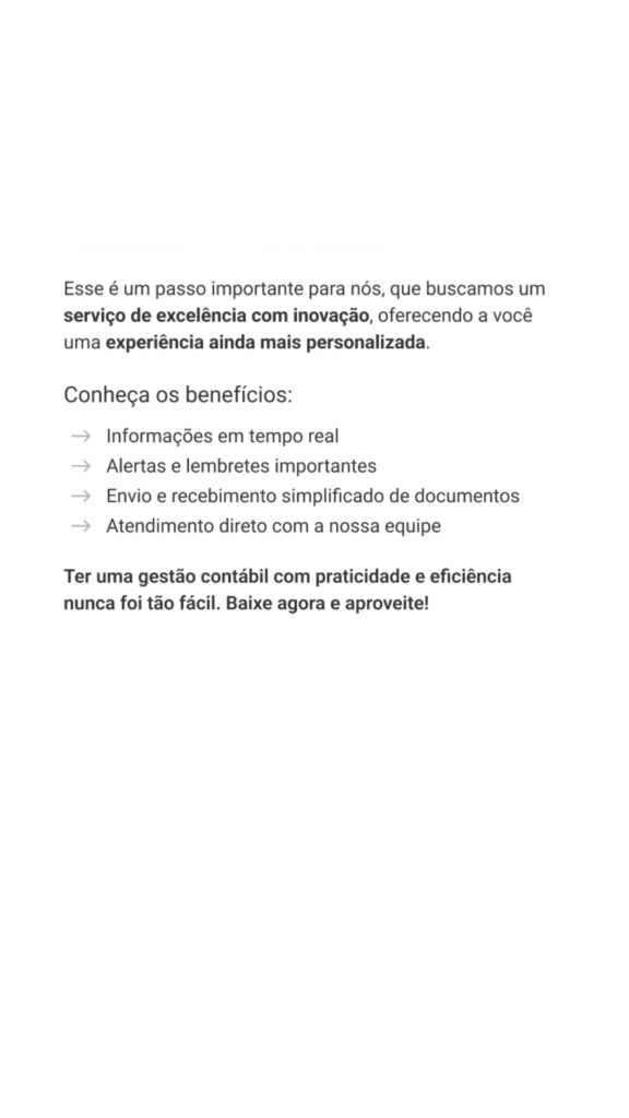 Contabilidade na palma da mão – Você tem acesso a um Escritório virtual, em uma plataforma totalmente integrada, onde você e a contabilidade estarão atualizando informações em tempo real.